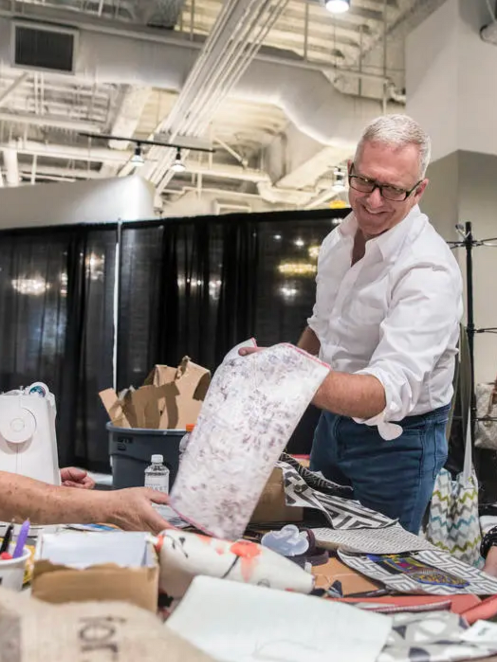In a corner of the World Market Center, artist Steven Spann turns what others throw away into thought-provoking works of art. Piles of discarded pallets, fabrics, and packaging from the Las Vegas Market become his palette. From ruined canvases and foam crates emerge paintings, sculptures, and fashion pieces that challenge ideas of waste and worth.